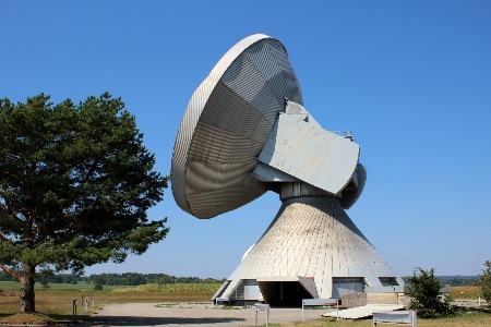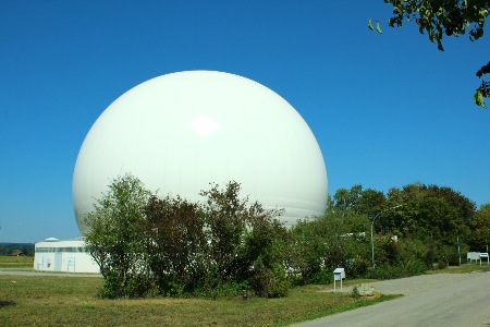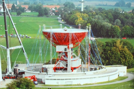 Vor Jahren wurde das Radom auffwändig restauriert und ist heute ein Industriedenkmal, welches Sonntags besichtigt werden kann. Auf dem Foto ganz links sieht man einen Zipfel der neuen Kunststoffhülle, am Kran hängend,die sich heute wieder über die Antenne spannt!